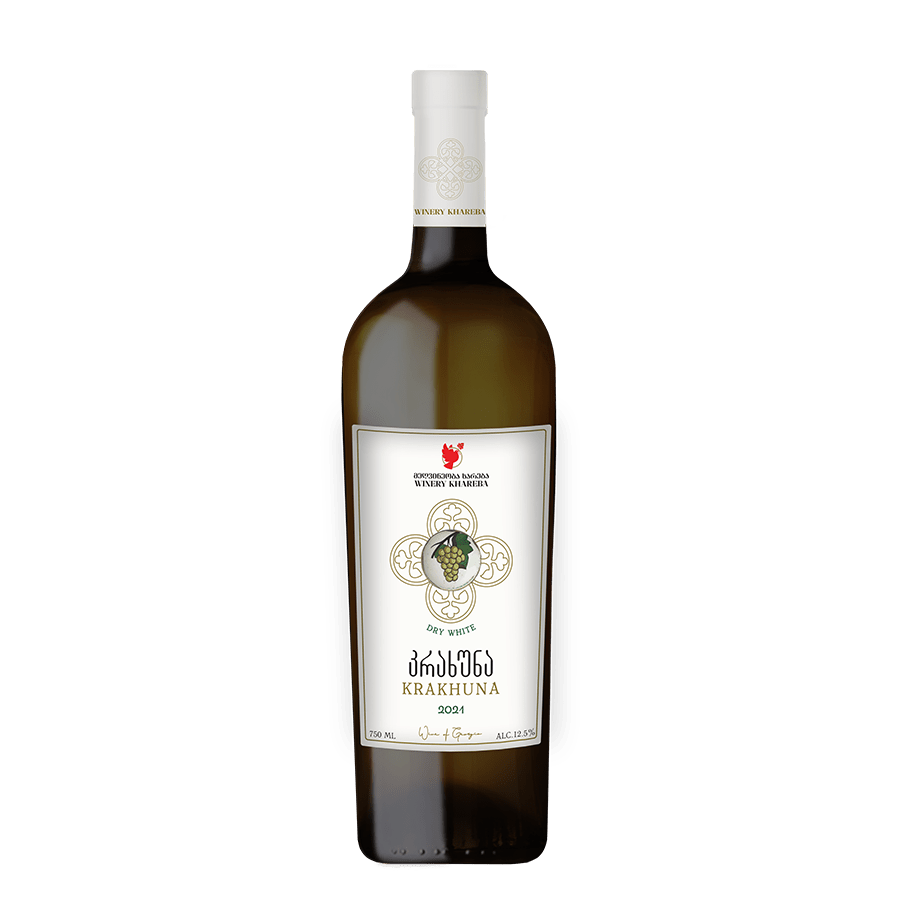 Khareba Krakhuna shows a straw-golden color. Its aroma is expressive, with notes of ripe pear, quince, melon, and delicate floral hints. On the palate, it is dry, medium- to full-bodied, with a round texture, balanced acidity, and a long, fruit-forward finish.